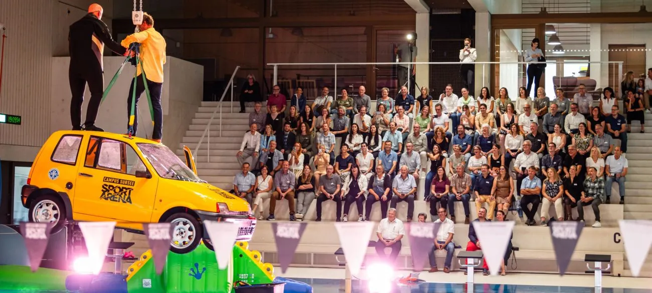 An diesjährigem Kundenevent vom 13. September 2024 verwandelte sich die Sportarena des CAMPUS SURSEE in eine spektakuläre Wasserwelt. Die Gäste wurden zu einer aussergewöhnlichen Reise voller Lachen, kulinarischer Köstlichkeiten und einer gehörigen Portion Humor eingeladen – und das ganz ohne nass zu werden!<br />