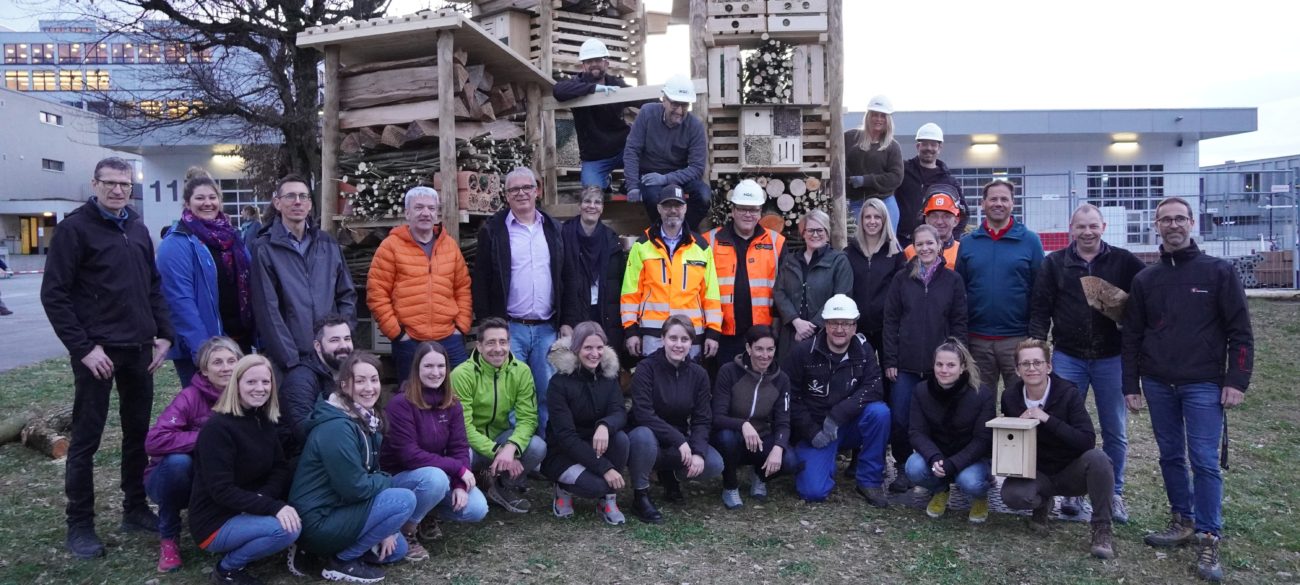 Mitten auf dem Gelände der Stiftung CAMPUS SURSEE ist ein neues Zuhause für zahlreiche Kleintiere entstanden – drei Lebenstürme. Dieses innovative Bauwerk wurde in Zusammenarbeit mit dem Lebensturm-Team Hildisrieden errichtet und setzt ein starkes Zeichen für den Schutz der Biodiversität. Der Lebensturm wurde von den Kadermitarbeitenden des CAMPUS SURSEE als Teamaufgabe gebaut, wodurch nicht nur ein wertvoller Beitrag zur Natur geschaffen, sondern auch der Teamgeist gestärkt wurde.