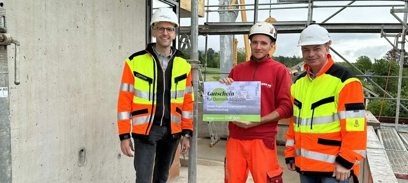 Dominik absolvierte die Vorbereitung zur Berufsprüfung Baupolier Hochbau / Tiefbau bei uns am CAMPUS SURSEE. An den diesjährigen eidgenössischen Baupolierprüfungen hat er die eidg. Berufsprüfung mit dem schweizweit besten Ergebnis abgeschlossen.