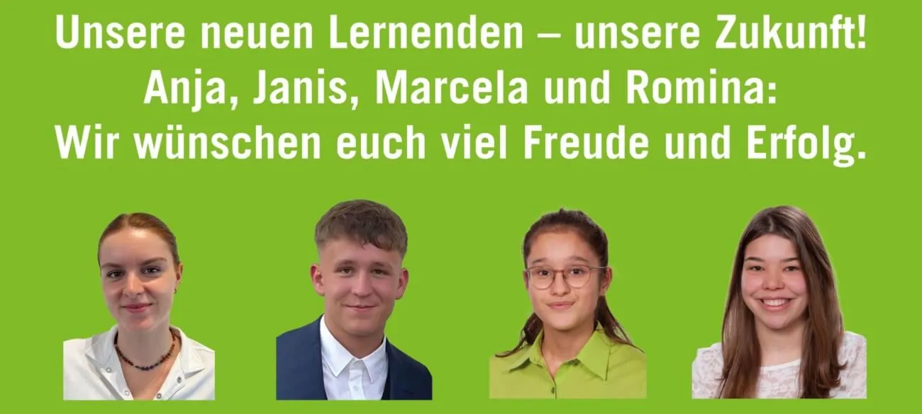 Für Anja (Lernende Köchin), Janis (Lernender Büroassistent), Marcela (Lernende Kauffrau) und Romina (Lernende Hotelfachfrau) begann diese Woche ein neuer Lebensabschnitt. Wir wünschen ihnen viel Freude, Erfolg und möglichst wenig Leere in der Lehre!