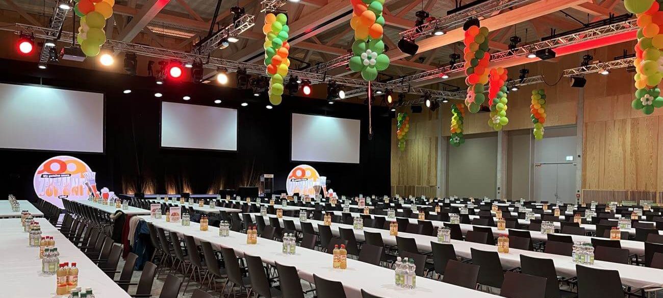 - Im Einsatz ebenfalls 1700 Ballons für Girlanden und 12 grosse Smileyballone bei den Eingängen.
