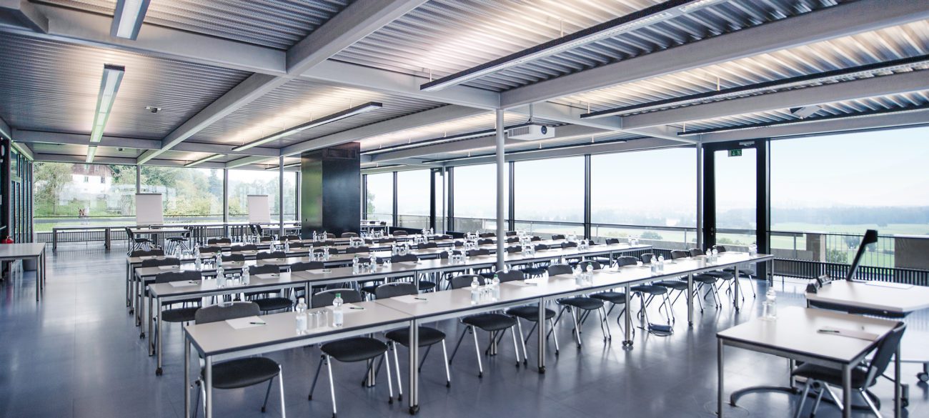 Der CAMPUS SURSEE verfügt über zwei grosse Seminarräume mit Platz für maximal 180 Personen bei Konzertbestuhlung sowie für 110 Personen bei Seminarbestuhlung.